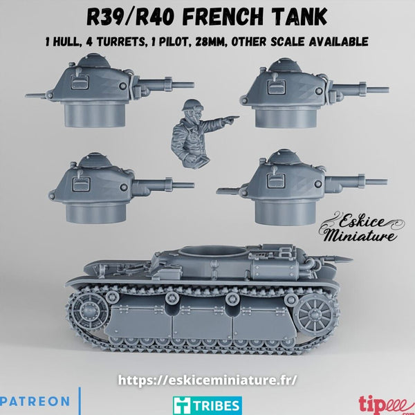-1 char R39/R40 et son chef de char (2 tourelles différentes)